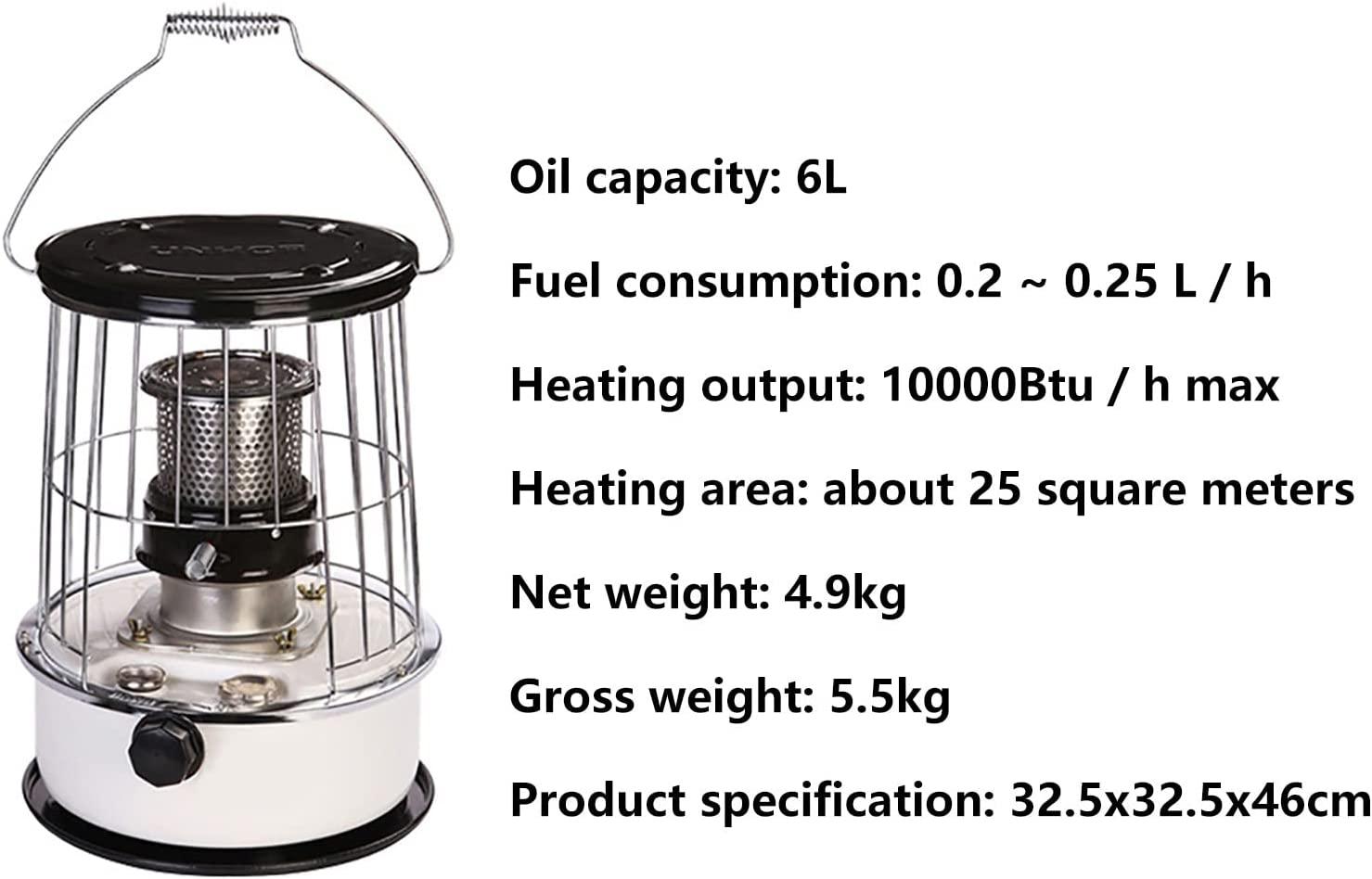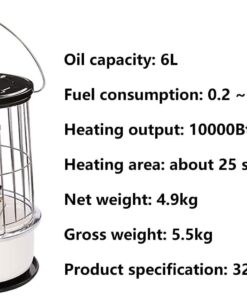 - Convenient – Easy to use automatic ignition and one-touch shut-off. The maximum calorific value is 9000BTU/H (equivalent to 2800W), and the fuel consumption per hour is 0.2L/hr. It can quickly heat up a room of about 20-30 square meters.