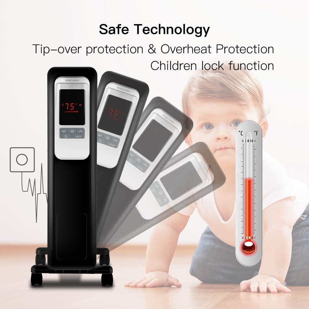 - 【Smart ECO Mode Save your Money】No need adjust your oil heater frequently as it has smart ECO mode. ECO mode would keep your ideal setting TEMP automatically which also saving your energy bill.