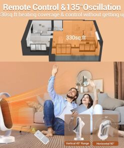 Space Heaters for Indoor Use, 1500W Portable Heater, PTC Graphene Fast Heating Ceramic Heater Thermostat Energy Efficient Outdoor Heaters for Patio with Remote Control 8H Timer for Large Room