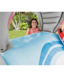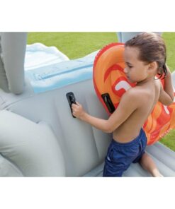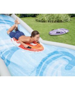 Enjoy endless summer fun on the Intex Surf ‘N Slide. Simply attach garden hose for sprayers to wet the slide surface. The landing mat has extra padding underneath. It is equipped with 2 surf riders with heavy duty handles.