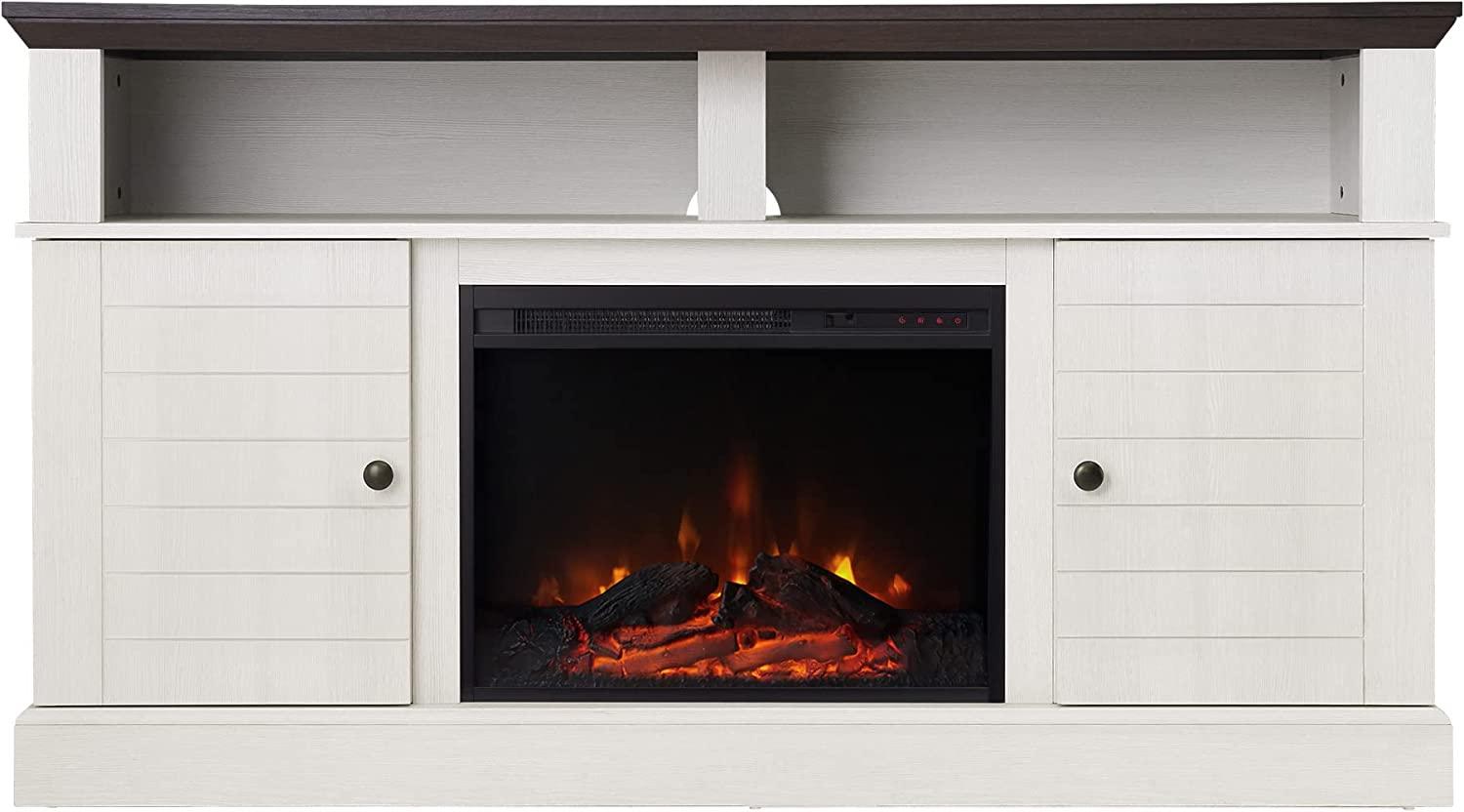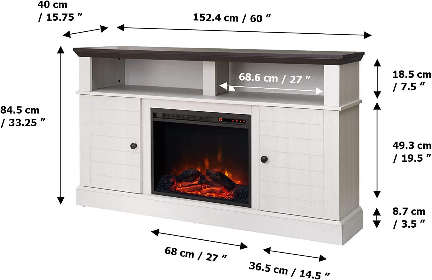 - MULTI-FUNCTION FIREPLACE: Built-in faux flame fireplace has separate flame effect and heat controls that can be controlled with the included remote