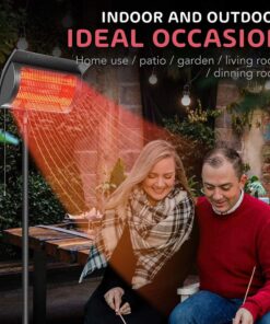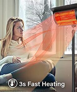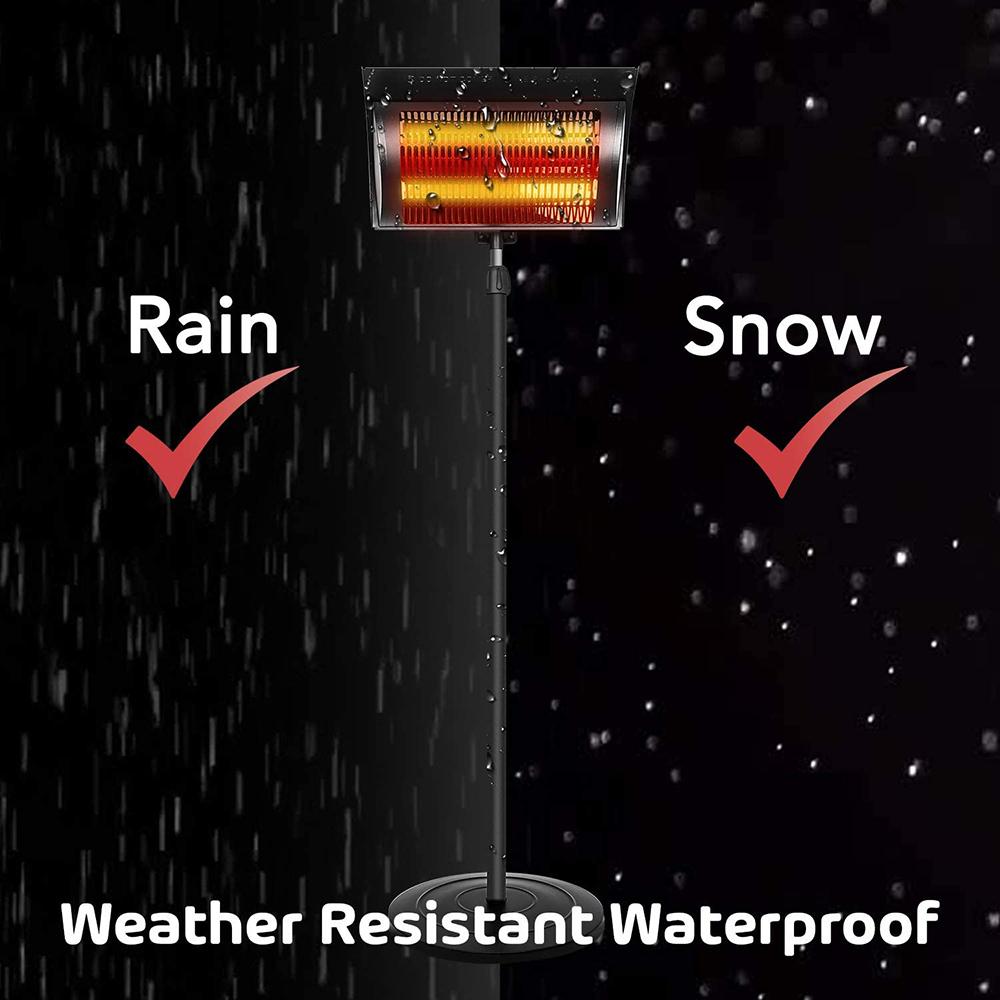 - Perfect for Indoors and Outdoors: Built-in carbon fiber heating tube, the infrared heater is efficient and saves energy. The waterproof and Standing design allows it to be installed in Balcony, Courtyard, Garage, Patios and restaurants, so your winter is no longer cold.