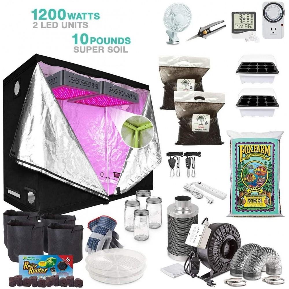 TheBudGrower Indoor Plant Growing Solution 1200-watts: Turn-Key Full Instructions – Dual Light Powered Indoor Plant Growing Kit for Extra Control and Ease of Use – Tent/LED Light/Soil+