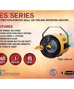 - Easy to install: space heater with DIY installation flexibility can be ceiling or wall mounted, and features direct wiring and thermostat adjustment for desired comfort and warmth. Designed to circulate room air continuously, the heater gradually heats up a confined space. The corded electric power source has a warranty of 1 year and weighs 60 pounds