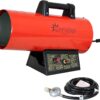 • Sunnydaze 40,000 BTU Forced Air Propane Heater – Portable Heat for Construction Sites – Auto-Shutoff for Overheating Protection – Adjustable Heating Output – Piezo Ignition – Red and Black $65.91