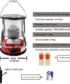 - ▲ Size: 32x32x46cm Fuel: Kerosene Fuel tank capacity: 4.5L. Fuel time: 16-21 hours (excluding kerosene fuel).