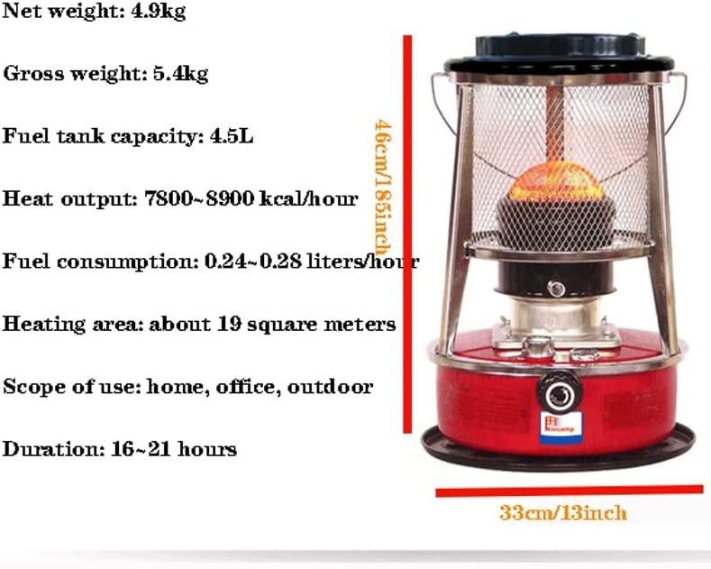 - Efficient heating: The combustion chimney of the kerosene heater is made of special metal, the kerosene is fully burned, and the heating is faster and more efficient. Bigger, more efficient, quieter. Non-electric heaters for indoor, cooking, greenhouse, patio, camping and tent heating.
