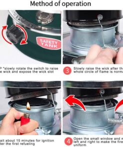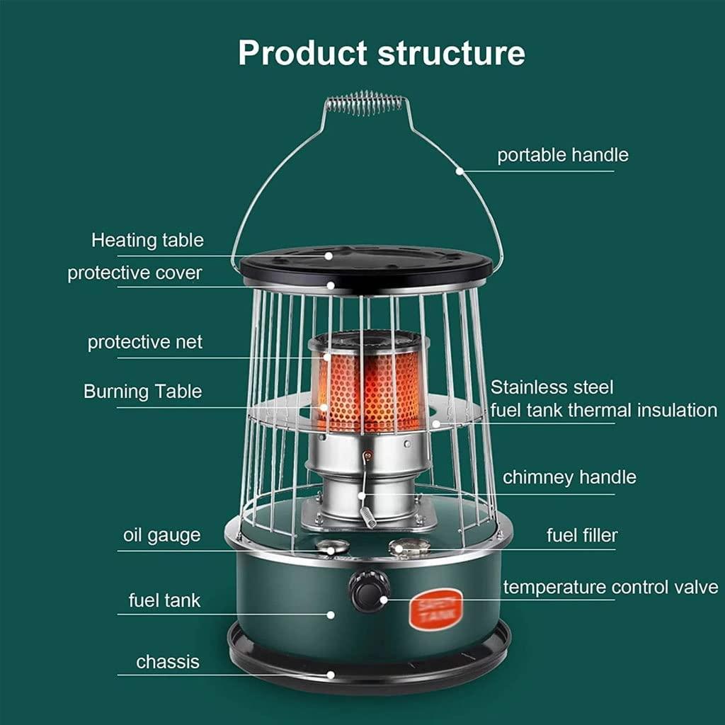 - ★Energy Saving and Safety: Portable kerosene heater without electricity. Don’t worry about power outages due to hurricanes, heavy rain and snow, and use it anytime. The kerosene heater has the characteristics of quietness, no peculiar smell, no oil leakage, and durability.