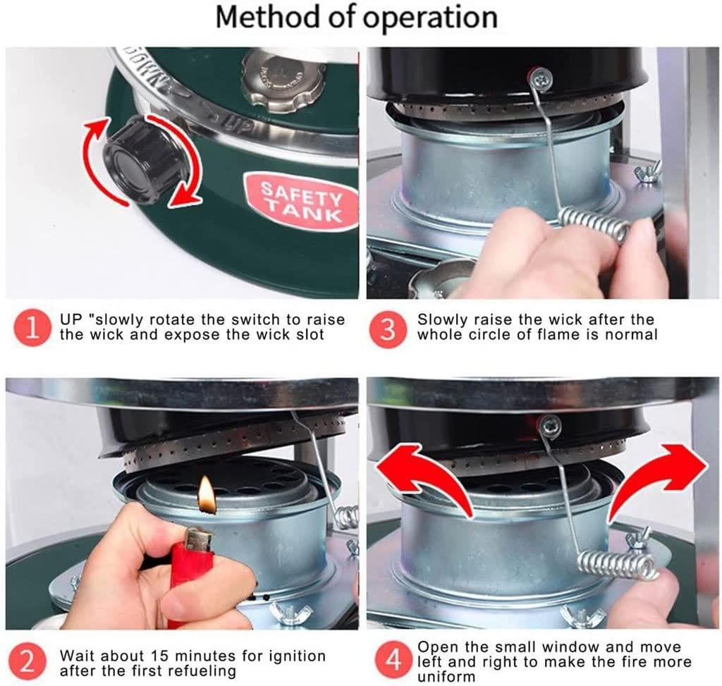 - ★Efficient Kerosene Heater Stove: The combustion chimney of the non electric heaters is made of special metal to ensure that the kerosene is fully burned, and the heating is faster and more efficient. (No peculiar smell after full combustion).