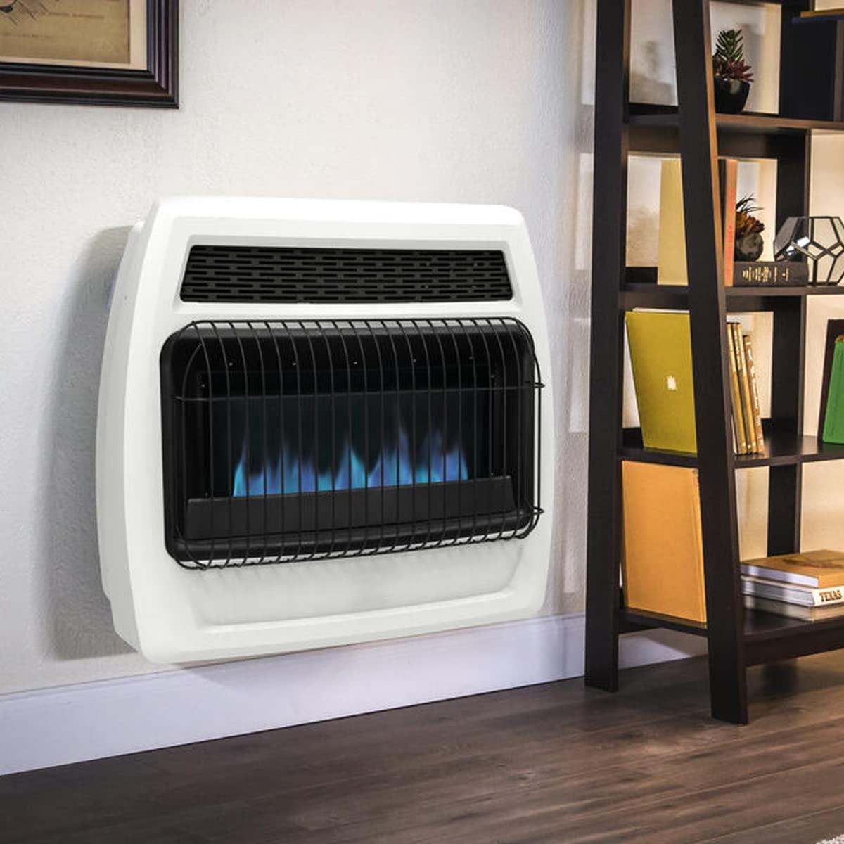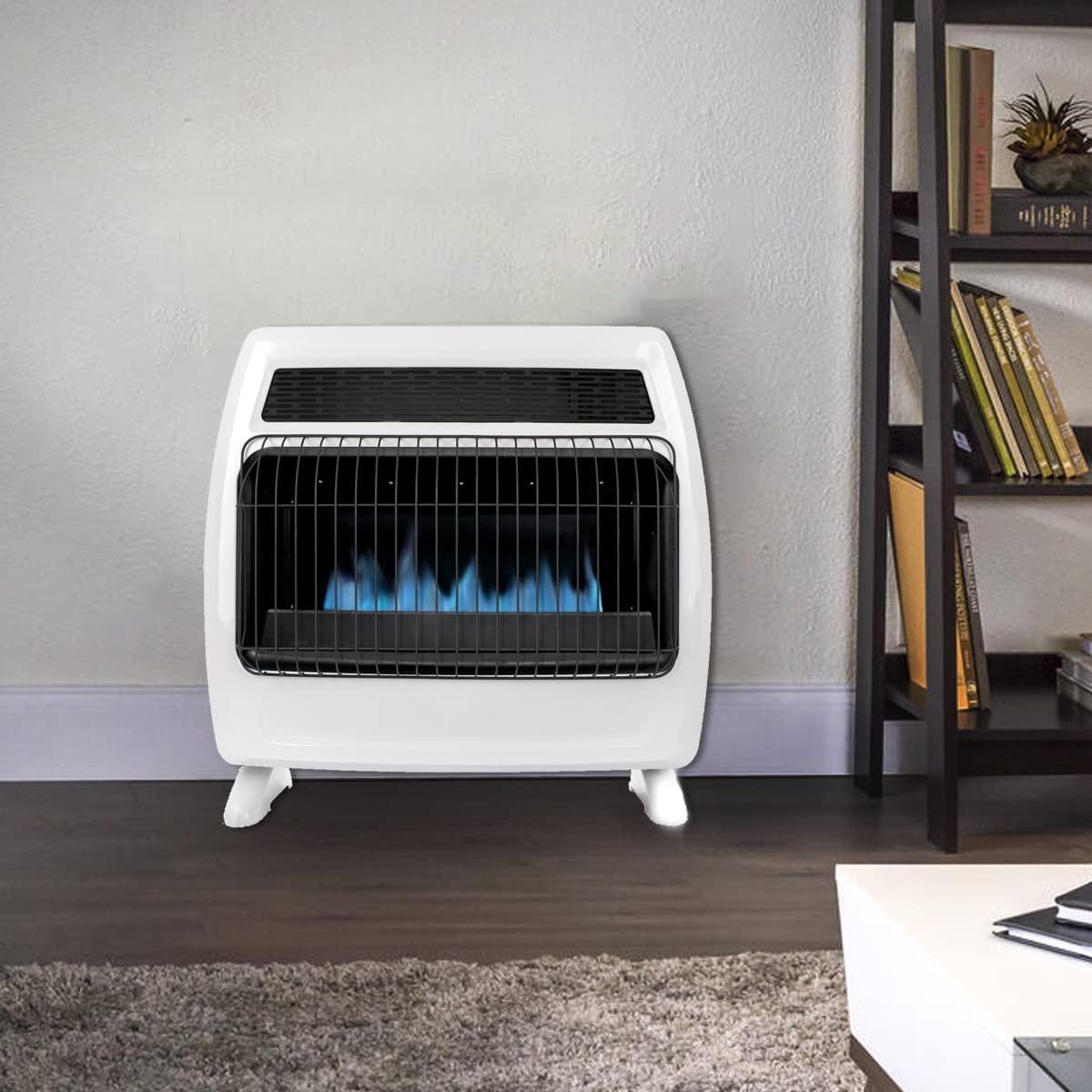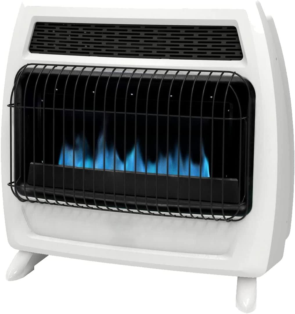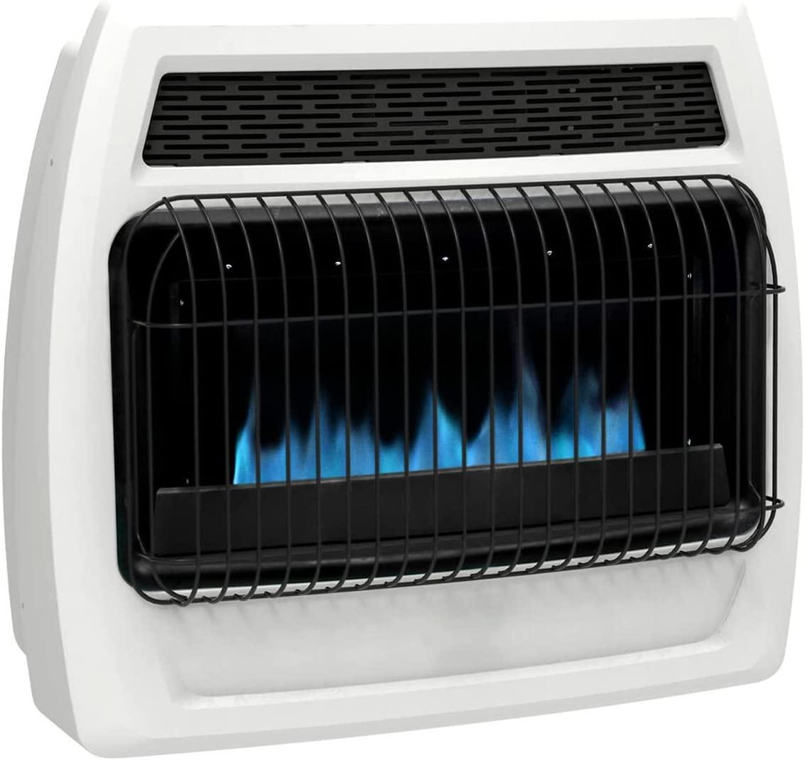 - Liquid propane ready, blue flame 30,000 BTU/hr. heats up to 1,000 square feet