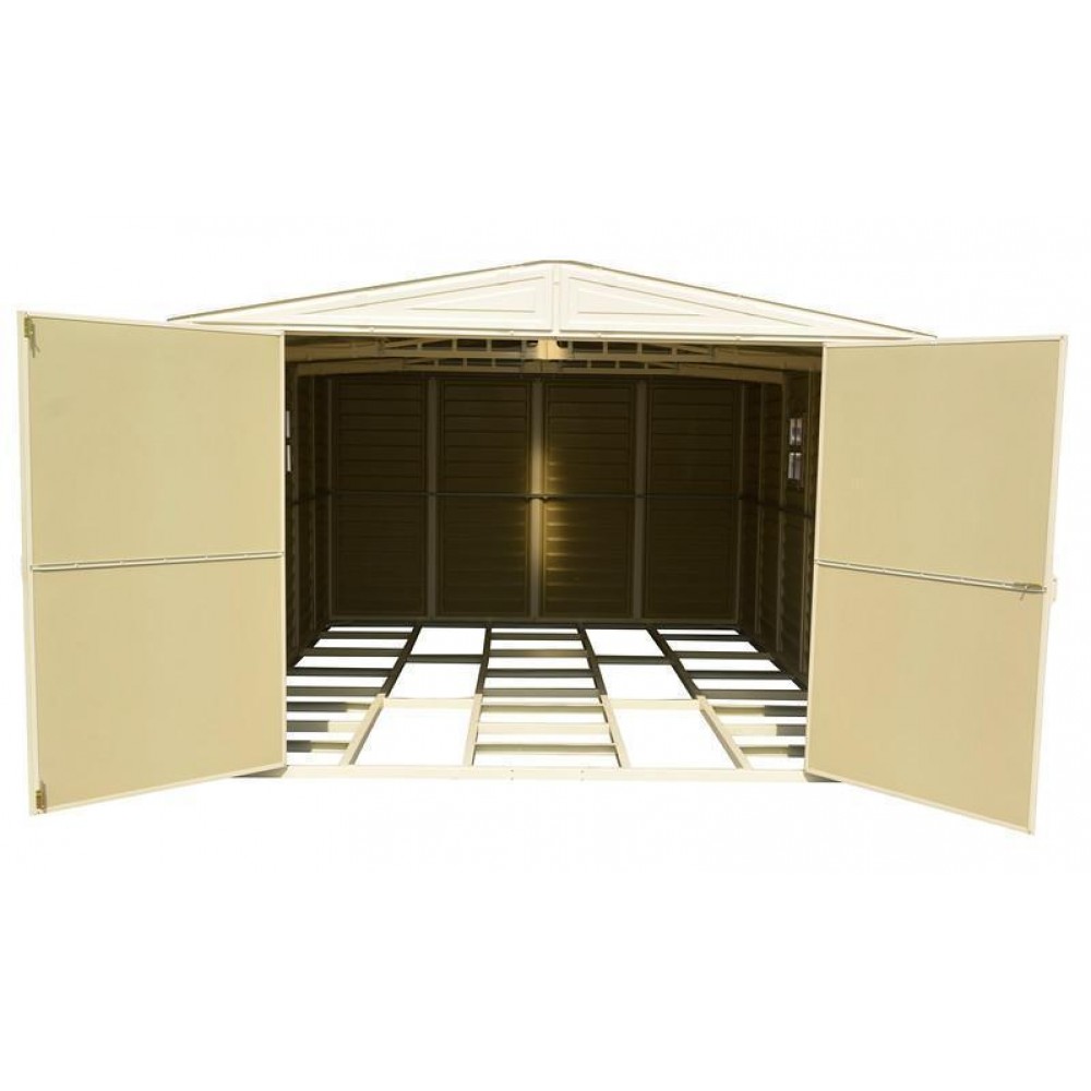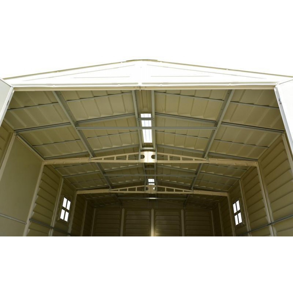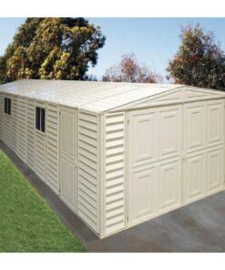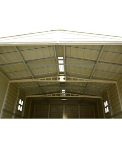 As you would expect from a large storage shed, this walk-in shed features tall and wide double doors. The wall columns are reinforced with a solid metal structure that gives the shed strength and allows you to hang shelves or garden tools. These large storage sheds can also be used as hobby or activity rooms. The Durable vinyl will not rust, dent, rot, mildew, or fade and never needs painting. The walls are reinforced with columns inserted with steel delivering rigidity and strength. The Barn Garage can handle 35 lbs per square foot of snow. The 114′′ roll up door is wide enough to comfortably drive in a truck or tractor. The attractive siding design and neutral ivory color go well in any setting.