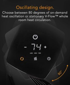 - OSCILLATING COMFORT — Features 80 degrees of on-demand oscillation, providing you the option of stationary V-Flow whole room air circulation or sweeping heat airflow