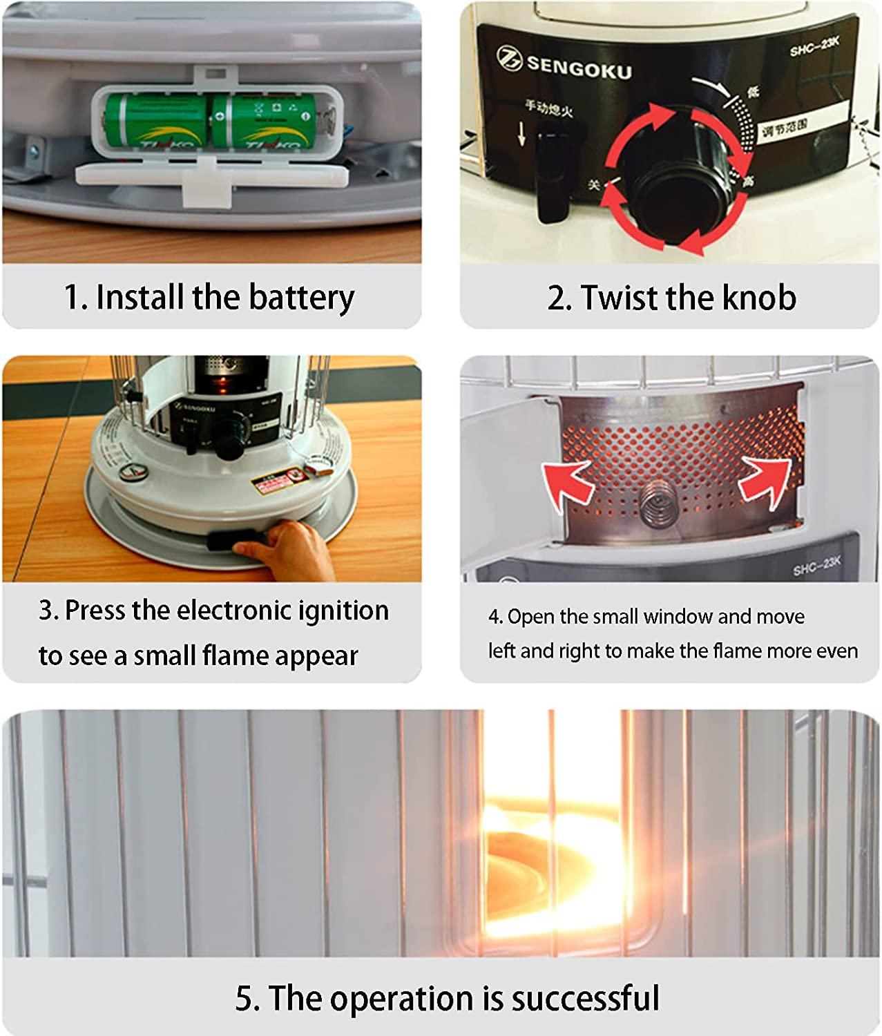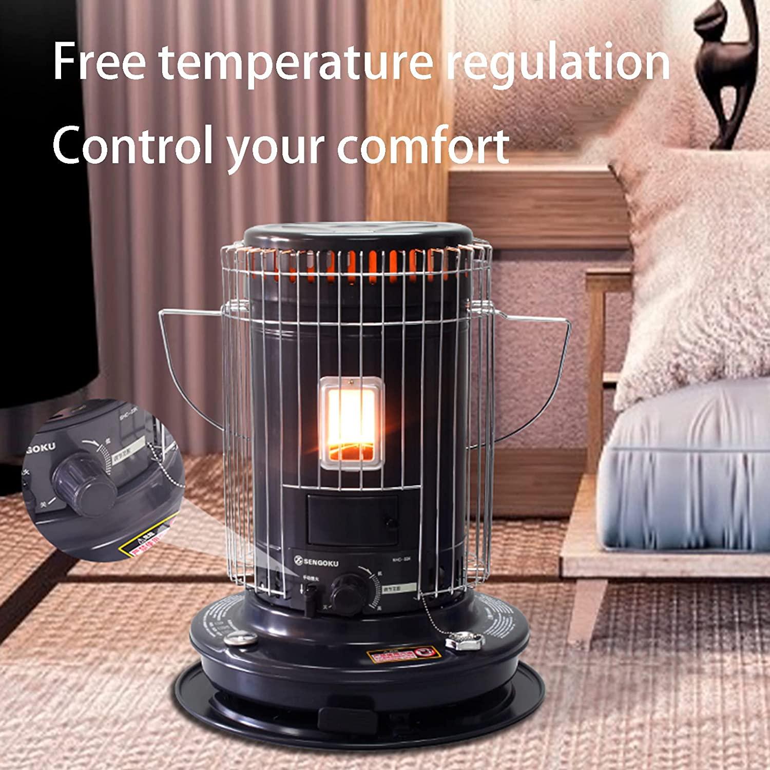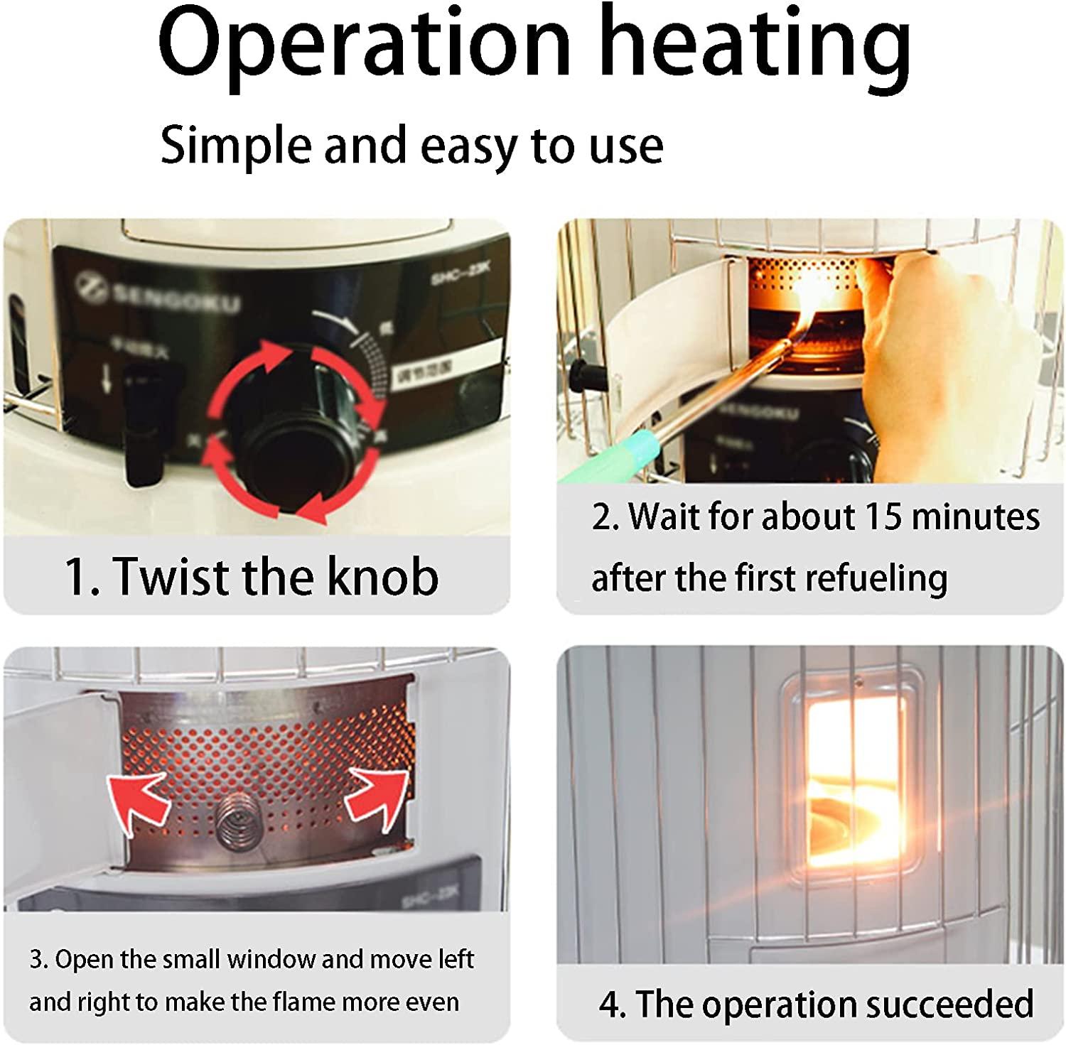 - MORE EFFICIENT KETROLEUM HEATING: The combustion chimney of the indoor portable kerosene stove without electricity is made of special metal so that the kerosene is burned completely and the heating is faster and more efficient
