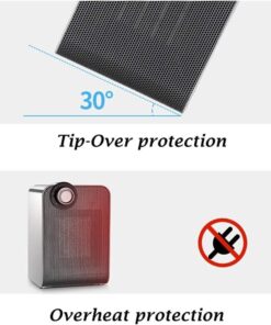 - PTC ceramic element is self-regulating for enhanced safety, also featuring tip-over and overheating protection, which the heater automatically turns off when tilts down or overheating occurs.