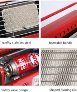 - Size about 25*24*20cm/9.8*9.4*7.8in. The butane heater can be adjusted 90 degrees backward to form a sturdy stand that supports pans and pots.