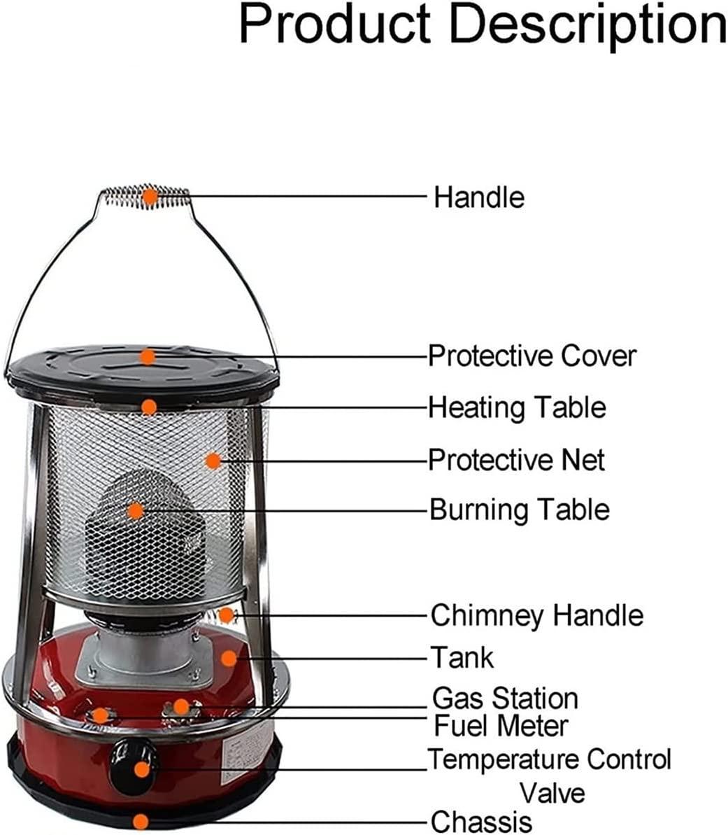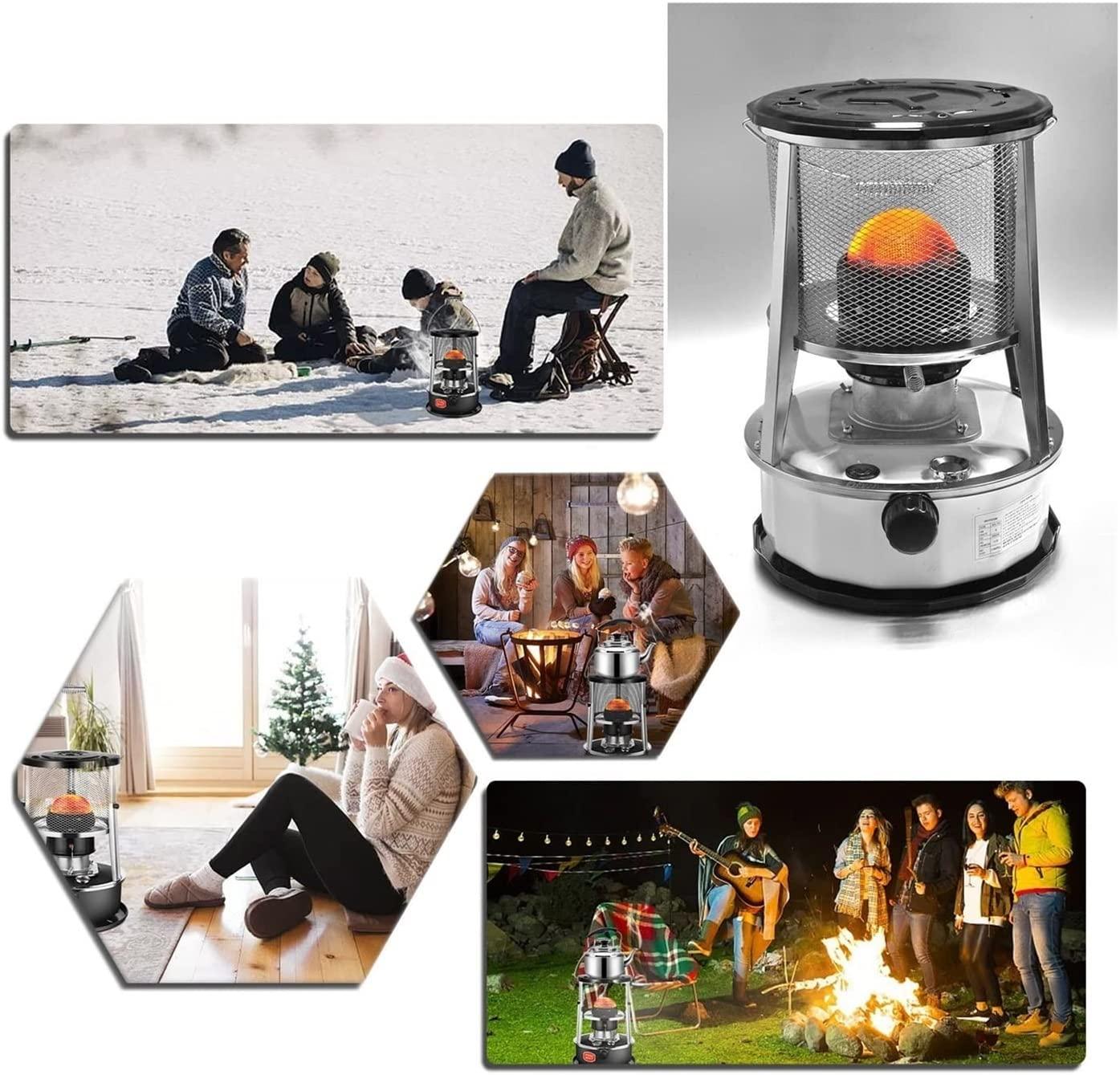 - ☀ Specially designed paraffin heater: made of stainless steel, the detachable body is easy to clean and durable. Rotating adjustment valve to adjust the fire power as required; no noise and no glare