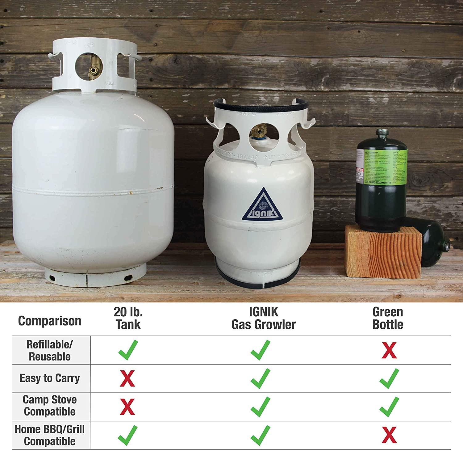 - By contrast, the refillable YAAN Gas Growler is more economical than single-use, 16-ounce bottles and more portable than traditional 20-lb propane tanks
