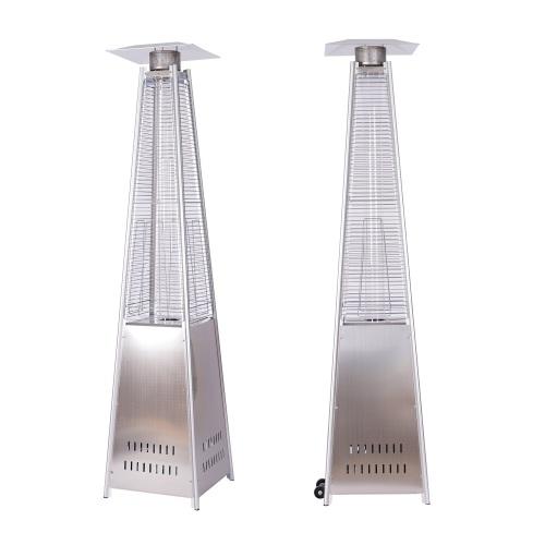 YueLi Outdoor Patio Pyramid Propane Space Heater-46,000 BTU Output Portable Flame Heater,W/Wheels,Stainless Steel Color