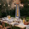 - Light Weight and Portable — This Table Top Patio Heater is designed for convenience and style. Its dimension is 221cm(H) /87 Inch. and only weight 33lbs, uses 1lb propane tank (not included), adjustable to 46,000 BTU’s.